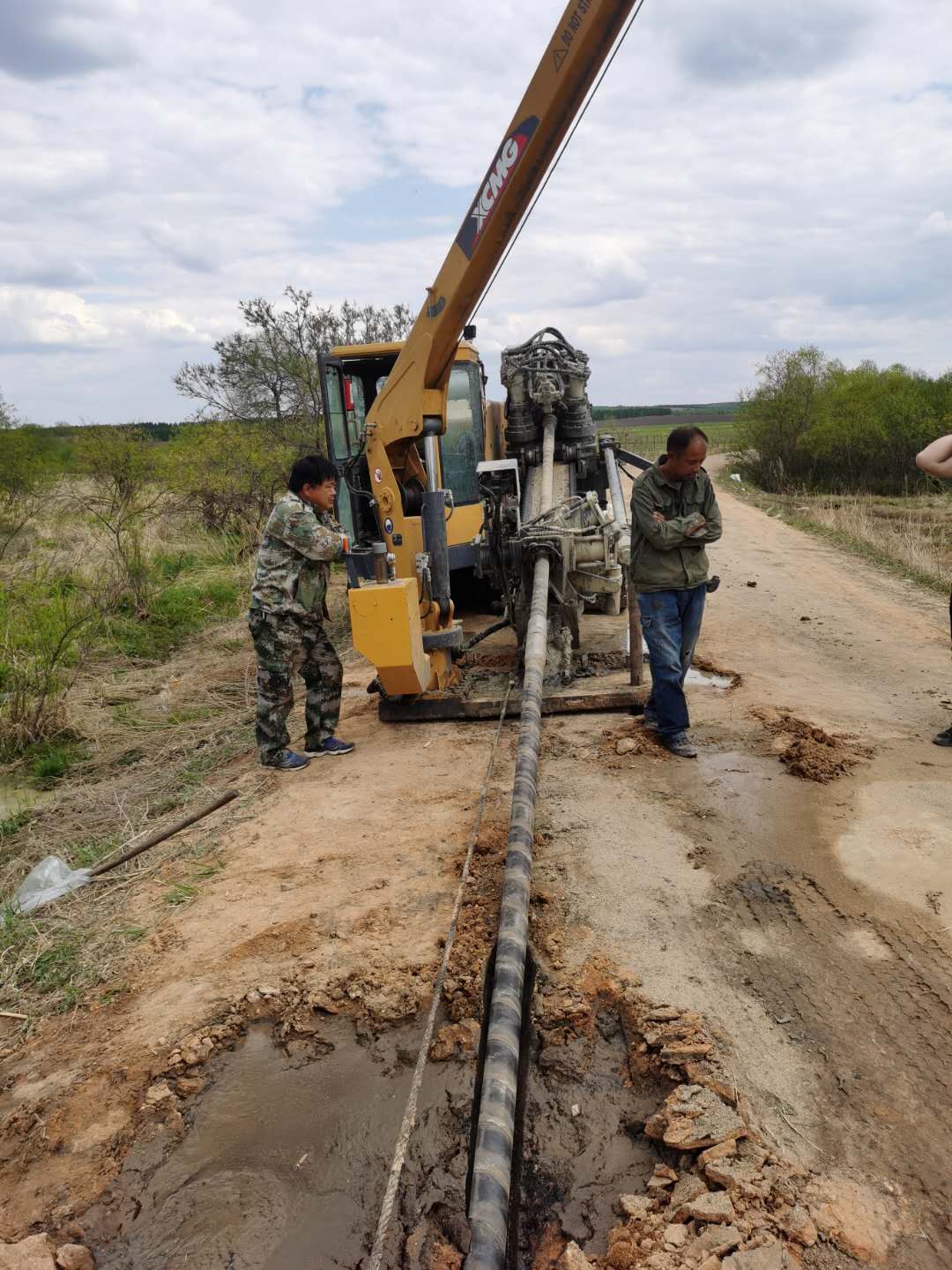 本項目施工地點在嫩江縣PE管線口徑DN180,采用拉管穿越方式本次施工,在地下有沙的情況下克服困難非常順利完成。